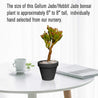 The size of this Gollum Jade/Hobbit Jade bonsai plant is approximately 6" to 8" tall, individually hand selected from our nursery. We guarantee only the highest quality succulent plant